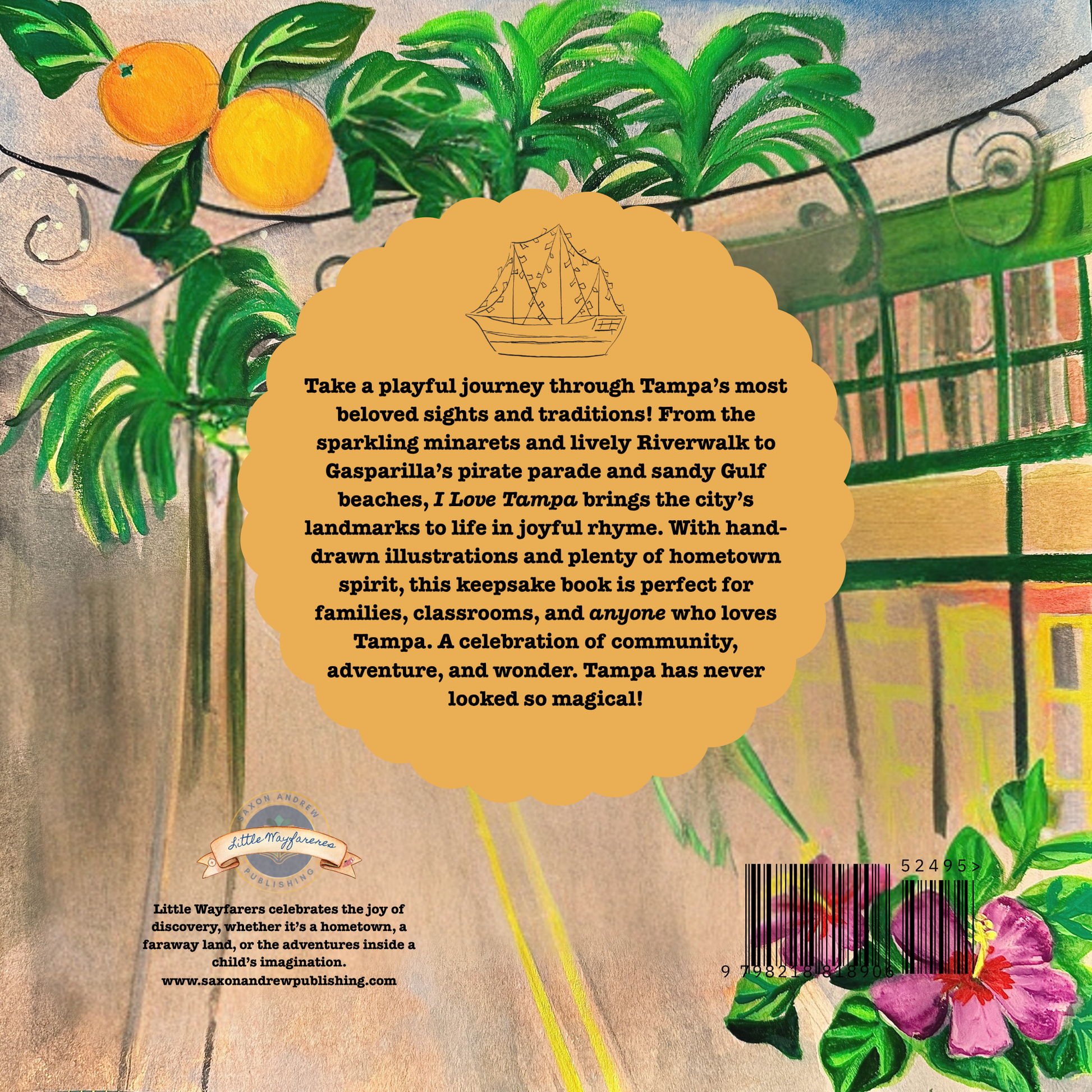 Take a playful journey through Tampa’s most beloved sights and traditions! From the sparkling minarets and lively Riverwalk to Gasparilla’s pirate parade and sandy Gulf beaches, I Love Tampa brings the city’s landmarks to life in joyful rhyme. With hand-drawn illustrations and plenty of hometown spirit, this beautiful hardcover keepsake book is perfect for families, classrooms, and anyone who loves Tampa. A celebration of community, adventure, and wonder. Tampa has never looked so magical!