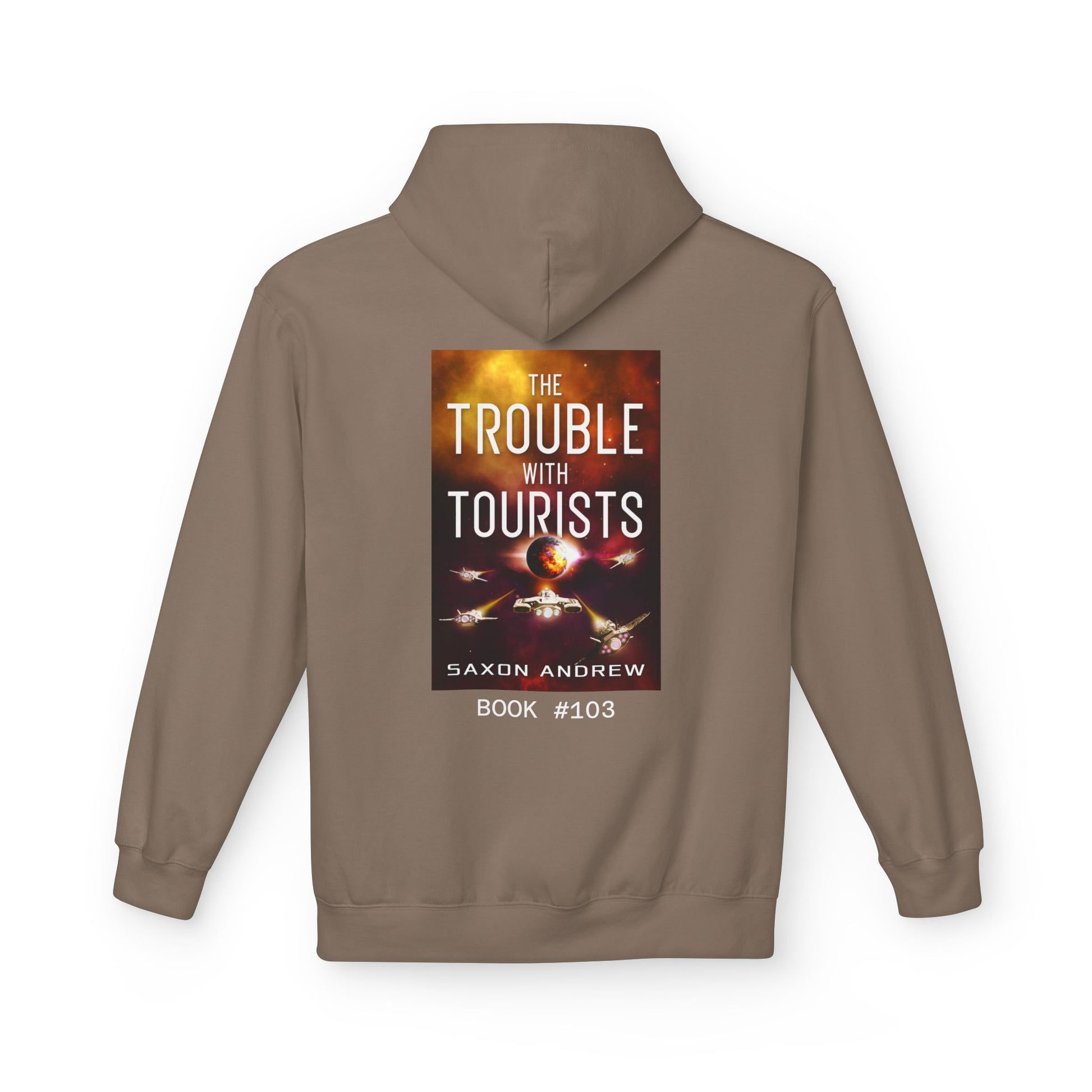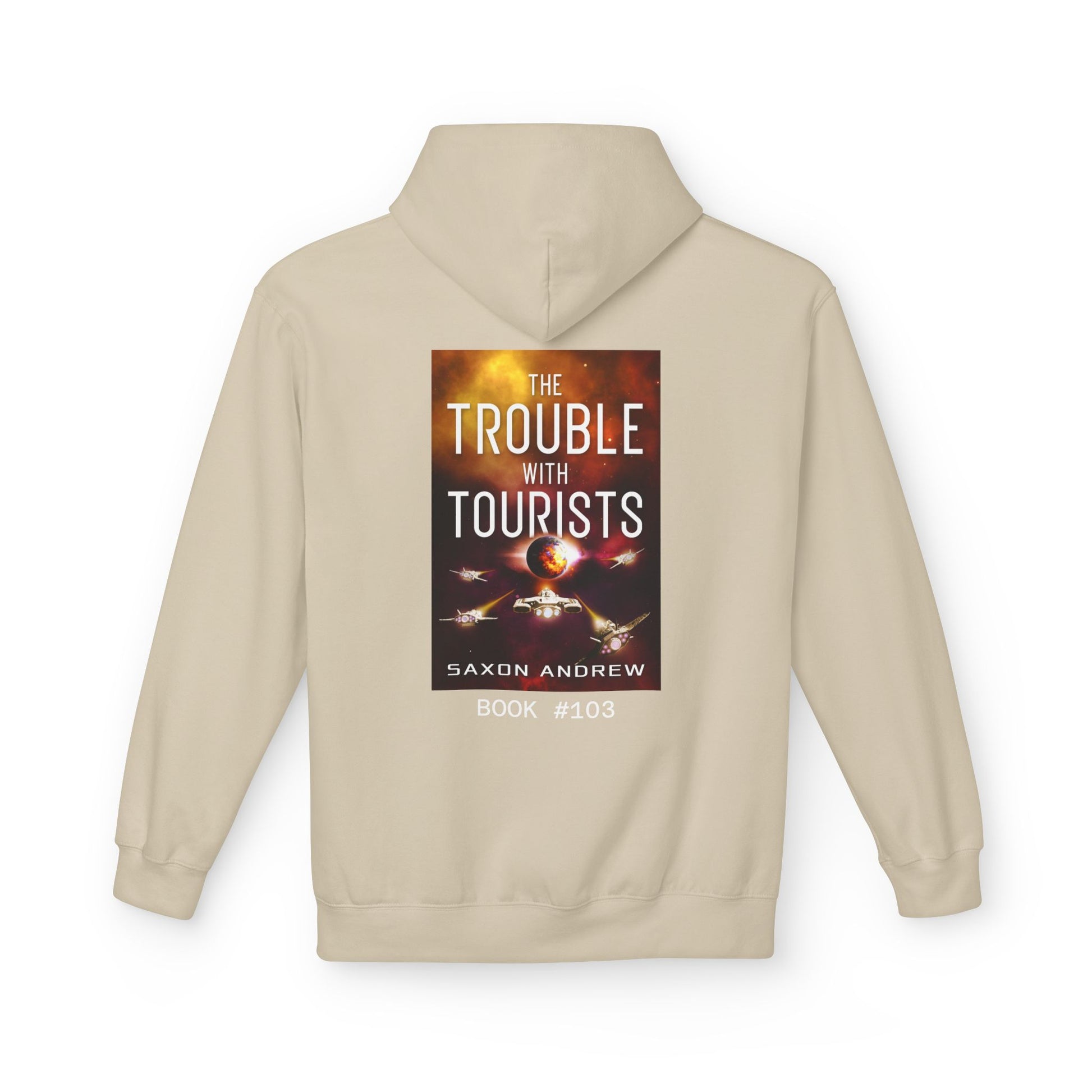 Saxon Andrew's Universe presents "The Trouble with Tourists” Book Cover Hoodie Pullover!